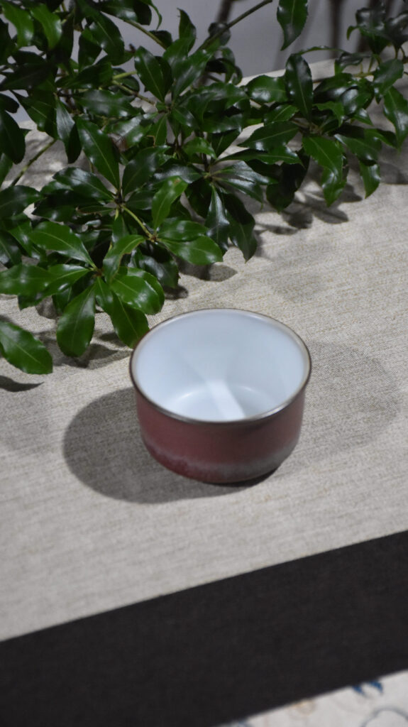 This cup is designed for those who appreciate the beauty of simplicity. The delicate gradient from plum red to white evokes the gentle transition of seasons, inviting peaceful reflection with every sip.
