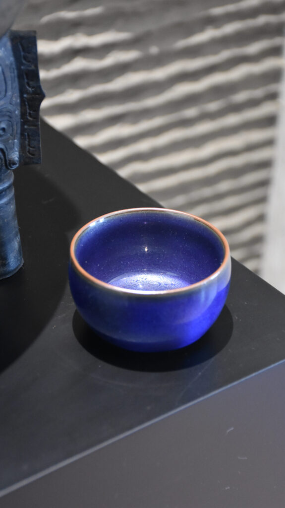 This iridescent blue glaze tea bowl has a rounded shape and a deep glaze color resembling the stars in the night sky. The blue hue is rich in layers and has a delicate luster, which not only enhances the atmosphere of the tea ceremony but also reflects the elegant taste of the host.